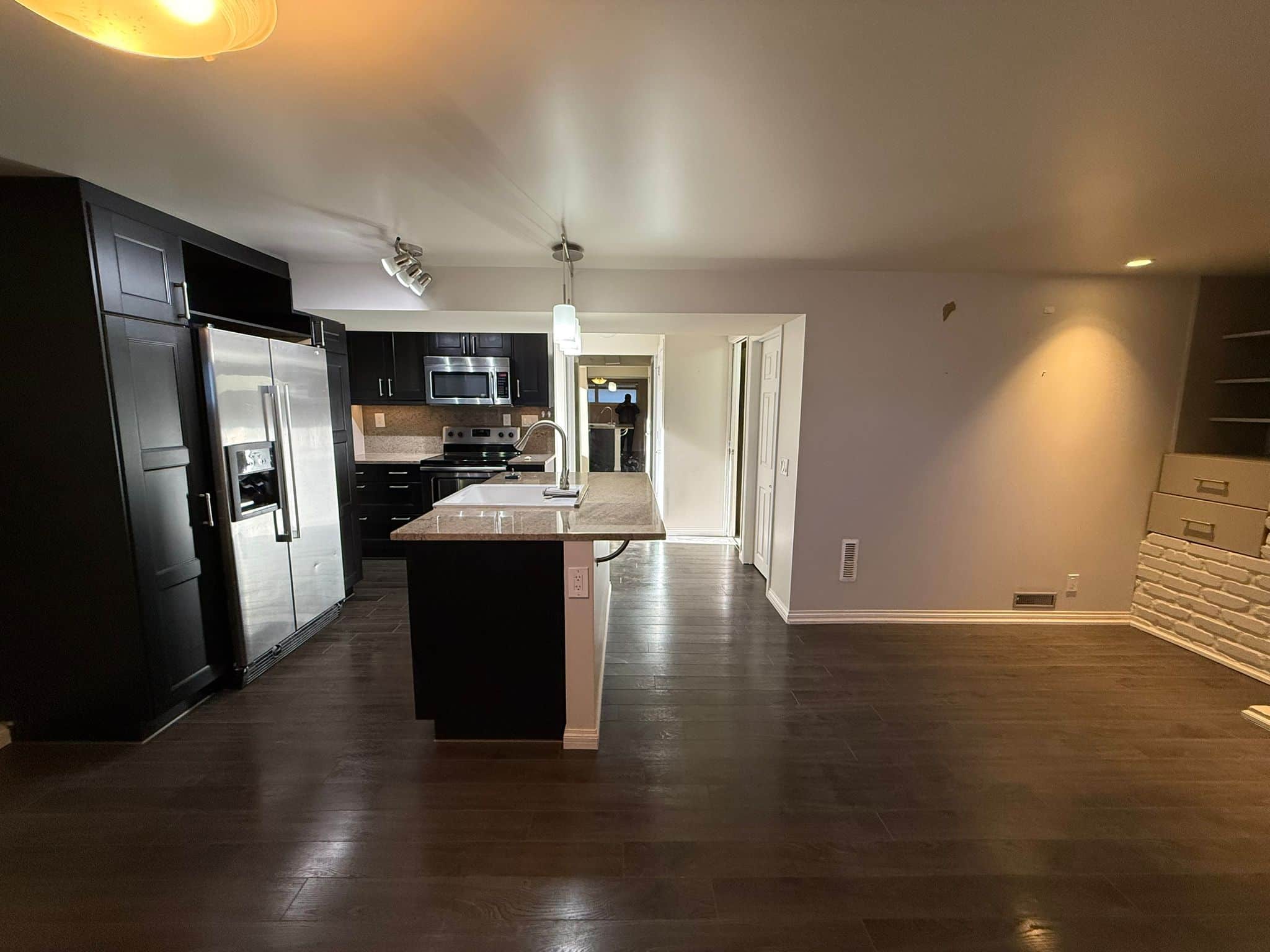 Step into a spacious living room featuring a cozy fireplace—perfect for relaxing evenings at home. The well-designed layout provides two comfortable bedrooms, a full bathroom, and a functional kitchen area ideal for everyday living.